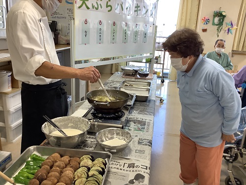 流石天ぷら!目の前で揚げたての天ぷら!うれしくて万歳!!