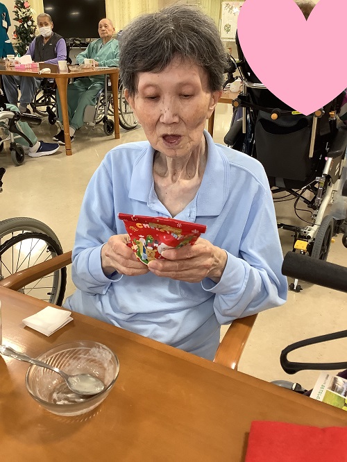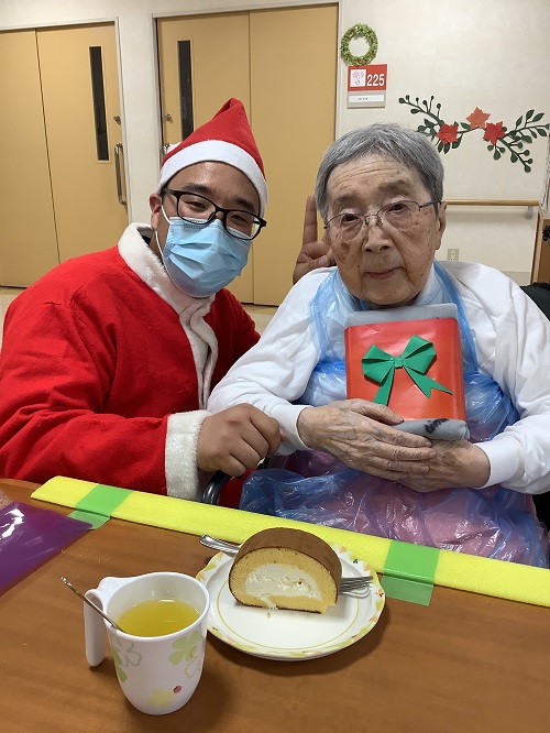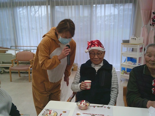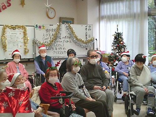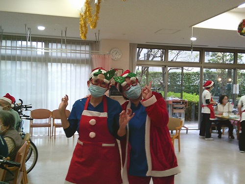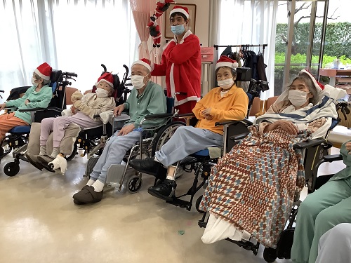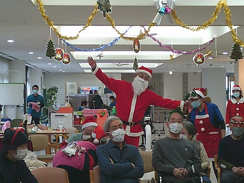 今年は全館合同でクリスマス会を行いました。ゲームで楽しんだ後は、職員による マツケンサンバの踊りを披露。みんな必死で振付を覚えゲスト様に楽しんでいただき嬉しかった!!