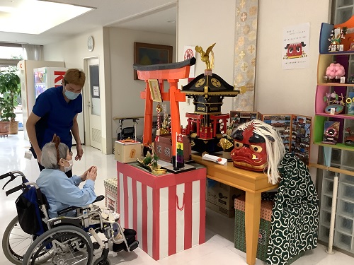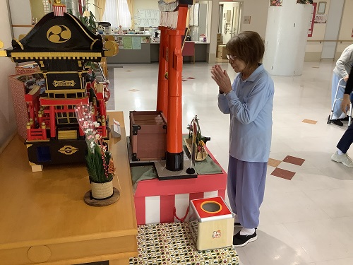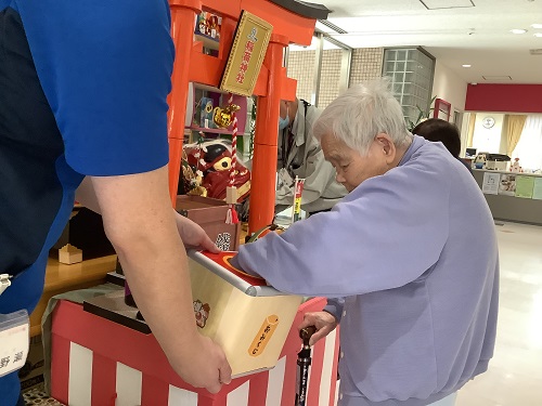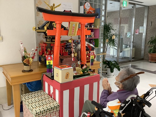 年始はケアヴィラ神社に参拝し、みなさんそれぞれの思いを込めて手を合わせました。
