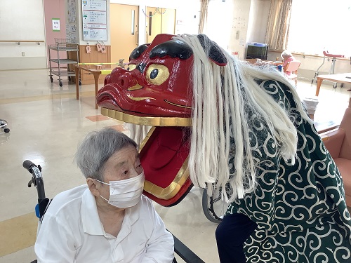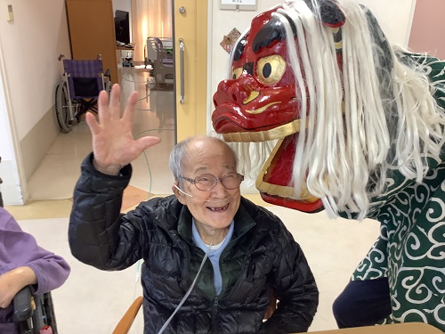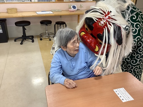 その後は獅子舞が登場!噛んでもらうことで神様がつくと言われています。驚いた方もいらっしゃれば 大喜びの方も!良い年明けになったかな!?